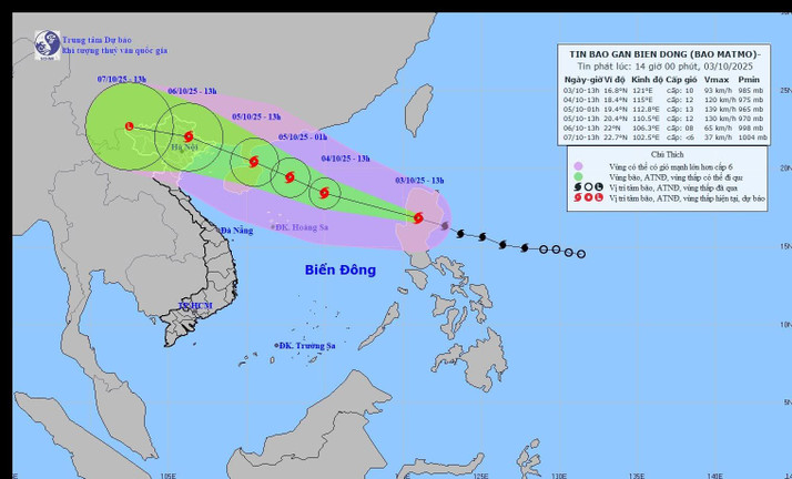 Báo cáo về công tác ứng phó bão Matmo (cơn bão số 11) của Bộ Nông nghiệp và Môi trường trong ngày 3/10 cho biết, bão Matmo sau khi vào biển Đông tiếp tục di chuyển nhanh, mạnh lên và đạt cường độ mạnh nhất cấp 12, giật cấp 14-15 trên khu vực phía Đông bán đảo Lôi Châu (Trung Quốc).