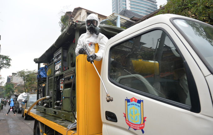 Khử khuẩn khu Trúc Bạch, Hà Nội.