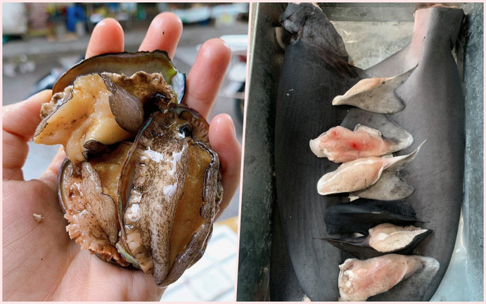 Ngay cả bào ngư tươi sống cũng đang được rao bán với giá khoảng 15.000 đồng/con. Loại này khoảng 30 - 35 con thì được 1kg. Tính ra giá thành khoảng 450.000 - 500.000 đồng/kg.