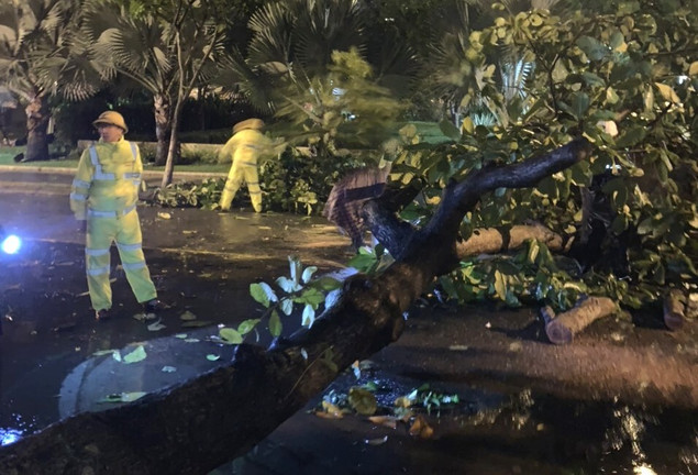 Theo Trung tâm Dự báo Khí tượng Thủy văn Quốc gia, lúc 22h ngày 27/9, bão số 4 đã ở trên vùng biển Quảng Trị - Quảng Ngãi. Sức gió mạnh nhất vùng gần tâm bão mạnh cấp 13 (134-149km/giờ), giật cấp 15.