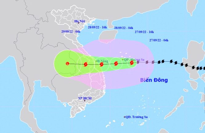 Dự báo trong 12 giờ tới, bão di chuyển chủ yếu theo hướng Tây, mỗi giờ đi được 20-25km và khả năng mạnh thêm. Đến 16h ngày 27/9, vị trí tâm bão cách Đà Nẵng khoảng 300km, Quảng Nam khoảng 250km, Quảng Ngãi khoảng 240km về phía Đông. Sức gió mạnh nhất vùng gần tâm bão mạnh cấp 14-15 (150-183km/giờ), giật cấp 17.