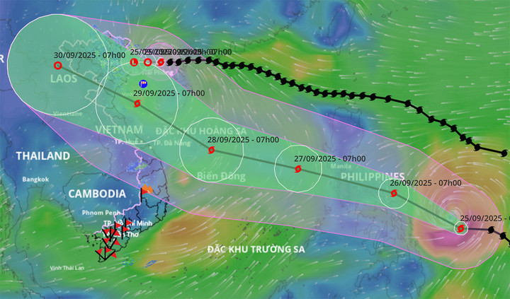 Dự báo khoảng đêm 26/9, bão Bualoi sẽ đi vào vùng biển phía Đông khu vực giữa Biển Đông, trở thành cơn bão số 10 năm 2025.