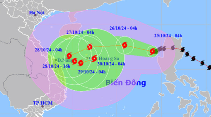 Trung tâm Dự báo khí tượng thuỷ văn quốc gia cho biết, lúc 4h ngày 25/10, vị trí tâm bão Trami (bão số 6 trên Biển Đông trong năm 2024) trên vùng biển phía Đông của khu vực Bắc Biển Đông. Sức gió mạnh nhất vùng gần tâm bão mạnh cấp 9-10 (75-102km/h), giật cấp 12. Bão di chuyển theo hướng Tây, tốc độ khoảng 10km/h.
