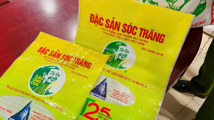 Qua kiểm tra, lực lượng chức năng phát hiện, thu giữ 875 kg gạo ST25 Lúa - Tôm nhãn hiệu Ông Cua - Đặc sản Sóc Trăng, giả Gạo ST25 nhãn hiệu Gạo Ông Cua do Doanh nghiệp tư nhân Hồ Quang Trí (Sóc Trăng) đóng gói, phân phối trên thị trường.