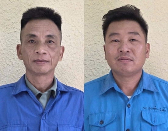 Chu Hữu Thái, Giám đốc Công ty TNHH Giao Sơn (trái) và Nguyễn Trung Hiếu, Giám đốc Công ty TNHH Shinhan. (Ảnh: Công an TP.HCM)