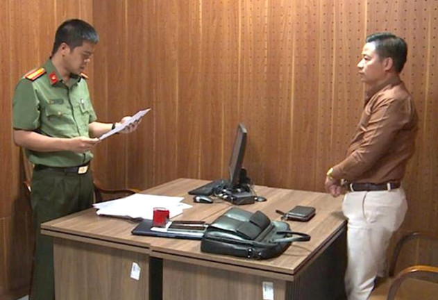 Cơ quan An ninh điều tra thông báo quyết định khởi tố bị can đối với Sỹ Anh Tuyên, Chủ tịch HĐQT Công ty cổ phần nước GMT. (Ảnh: Bộ Công an)