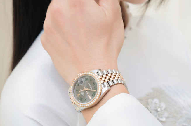 Quang Hải đeo chiếc đồng hồ mang thương hiệu Rolex trị giá hơn 600 triệu đồng khi chuẩn bị lễ ăn hỏi cùng vợ sắp cưới Chu Thanh Huyền.