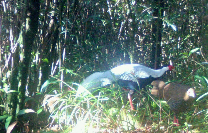 Gà lôi trắng thường sống thành đôi hoặc nhóm nhỏ, hiếm khi tụ tập thành đàn lớn (Ảnh: Ban Quản lý rừng đặc dụng Nam Quảng Trị).