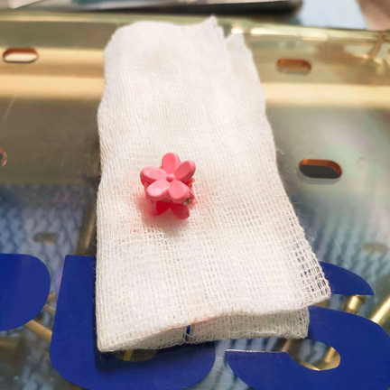 Vùng kín bệnh nhi viêm nhiễm, ra dịch mủ, khí hư suốt 6 tháng, nguyên nhân là do chiếc kẹp tóc nằm trong âm đạo của cháu.