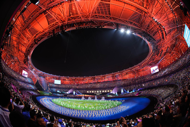 Do lễ bế mạc diễn ra chưa đầy 24h sau nội dung cuối cùng trên sân Hàng Châu, nên ban tổ chức tạo mặt sân kỹ thuật số với 40.000 điểm chiếu sáng.