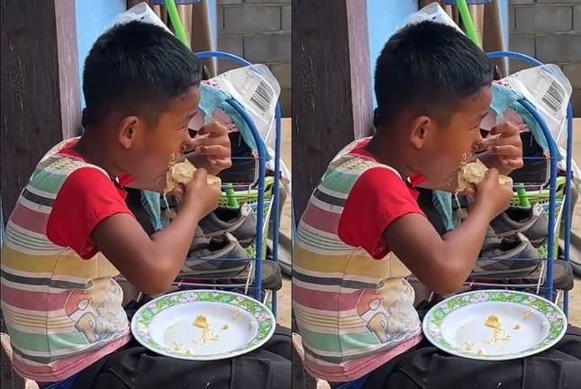 Bé trai khốn khổ bịt mũi ăn sầu riêng