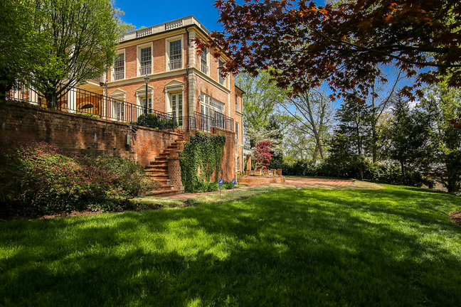 Ngôi nhà mang phong cách kiến trúc Georgia và được miêu tả như một Nhà Trắng thu nhỏ, nằm ẩn mình trên một khu đất nhiều cây cối. (Ảnh: HomeVisit)
