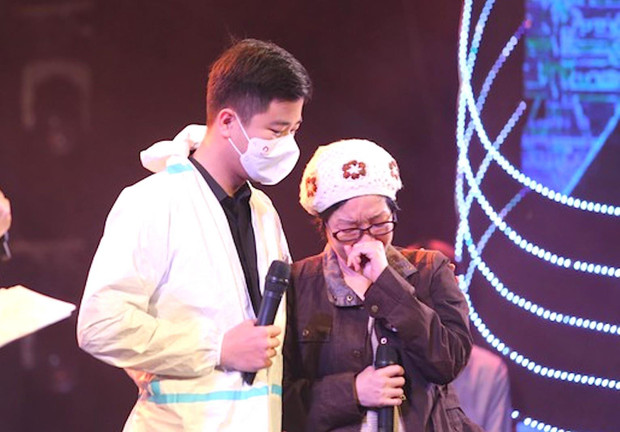 Giữa sân khấu lễ vinh danh, bác sĩ Bách mặc lại quần áo bảo hộ hòa vào "dàn bác sĩ", nhưng chị Văn vẫn tìm thấy anh nhờ ánh mắt thân quen. "Cảm ơn bác sĩ cứu sống không chỉ tôi mà còn rất nhiều bệnh nhân khác nữa", chị Văn khóc và ôm chặt lấy bác sĩ Bách.