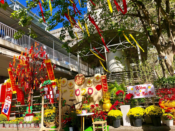 Với mong muốn mang không khí mùa xuân, giúp người bệnh và thân nhân cảm giác nhẹ lòng, đỡ nhớ nhà khi phải ở lại viện những ngày Tết, các y bác sĩ thuộc 75 khoa phòng Bệnh viện Chợ Rẫy cùng tham gia thiết kế đường hoa Tết trong khuôn viên.