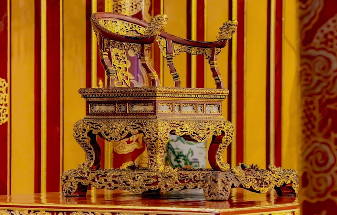 Ngai vàng triều Nguyễn đặt ở vị trí trung tâm điện Thái Hòa. (Ảnh: Cục Di sản Việt Nam)