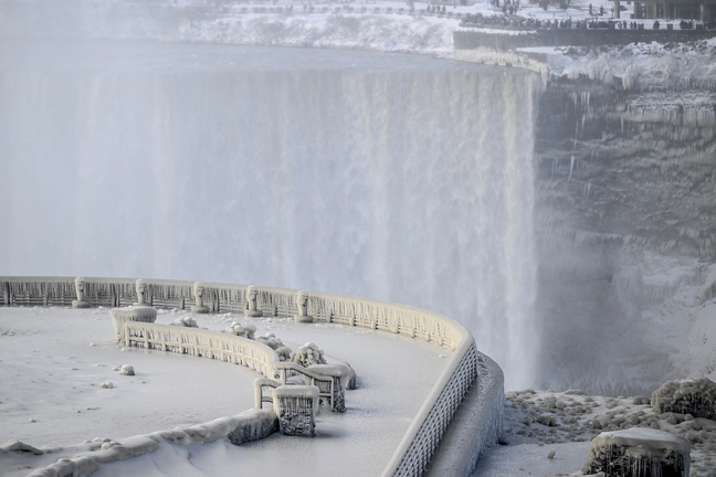 Gần như toàn bộ Công viên thác Niagara bị bảo phủ bởi băng tuyết.