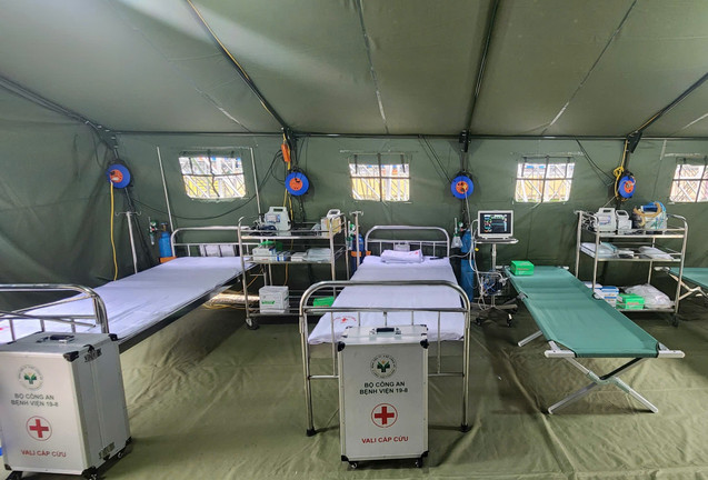 Lều y tế tại đây được ví như “bệnh viện thu nhỏ” với máy thở, thiết bị đặt nội khí quản, bình oxy.