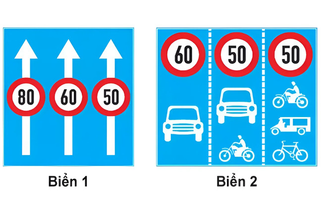 Biển nào báo hiệu xe phải đi đúng làn đường và tuân thủ tốc độ tối đa cho phép?