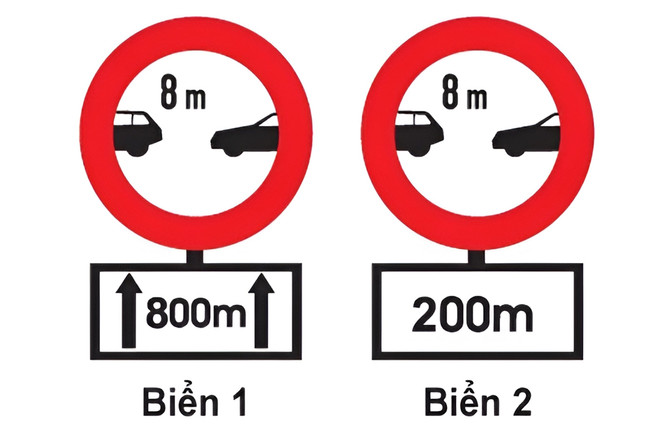 Biển nào báo khoảng cách từ nơi đặt biển đến nơi cần cự ly tối thiểu giữa 2 xe?