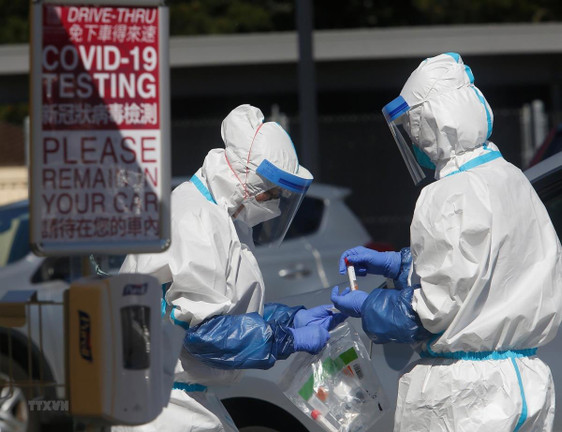 Nhân viên y tế phân loại mẫu xét nghiệm COVID-19. (Ảnh: The Chronicle/TTXVN)