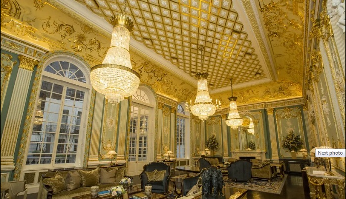 Biệt thự của 'ông trùm' điện thoại di động John Caudwell có 8 tầng với diện tích lên đến gần 4.000 m2, trong nhà có nhiều chi tiết được dát vàng lóng lánh.