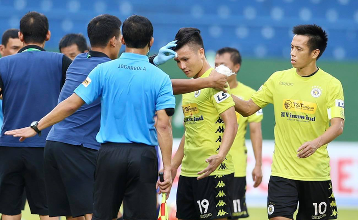 Quang Hai rách trán ở trận đấu với B.Bình Dương (Ảnh: CLB Hà Nội)