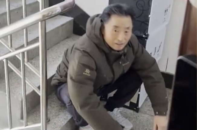 Tới nơi, bố chồng gửi tin nhắn để con dâu ra mở cửa, nhưng đợi mãi mà vẫn chẳng thấy hồi âm. Đoán biết có vẻ con dâu đang ngủ trưa và không muốn làm phiền, ông lặng lẽ ngồi đợi ở một góc cầu thang.
