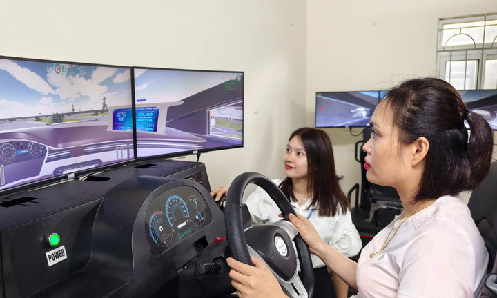 Học viên thực hành mô phỏng đường trường trên máy tính tại Trung tâm sát hạch lái xe. (Ảnh minh hoạ).