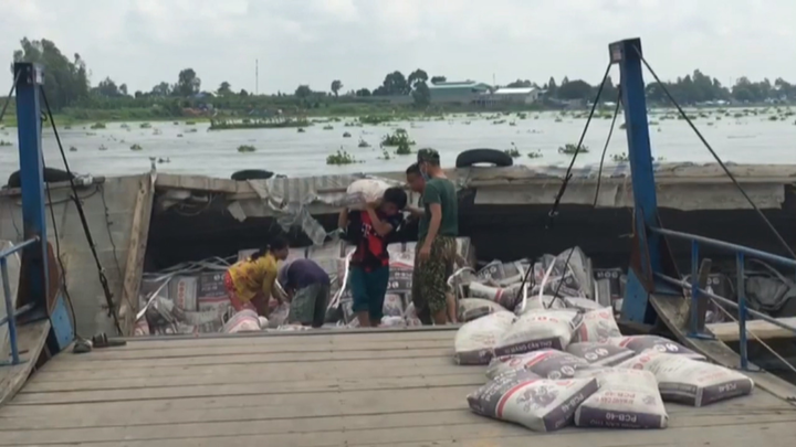 Video: Bộ đội Biên phòng cứu 2 vợ chồng bị lật ghe chở xi măng trên sông Hậu