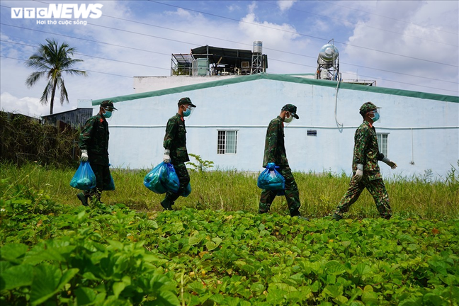 Các chiến sĩ thuộc Sư đoàn Bộ binh 5 phối hợp với UBND phường Trường Thọ, TP Thủ Đức, TP.HCM đã "đi từng ngõ, gõ cửa từng nhà" tặng thực phẩm.