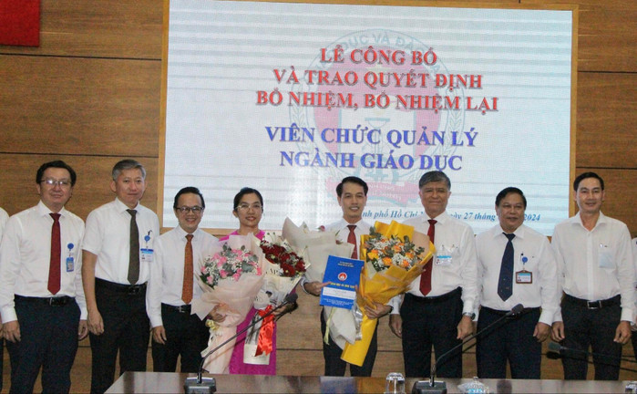 Cũng trong dịp này, Sở GD&ĐT TPHCM trao quyết định bổ nhiệm ông Nguyễn Minh Hoàng, Phó hiệu trưởng Trường THPT Mạc Đĩnh Chi (Quận 6) giữ chức vụ Hiệu trưởng Trường THPT An Lạc (quận Bình Tân); trao quyết định bổ nhiệm lại ông Thái Hoàng Minh, Phó hiệu trưởng Trường THPT Tam Phú (TP Thủ Đức) và bà Đinh Thị Ngọc Thảo, Phó hiệu trưởng Trường Mầm non 19/5 Thành phố (Quận 1).