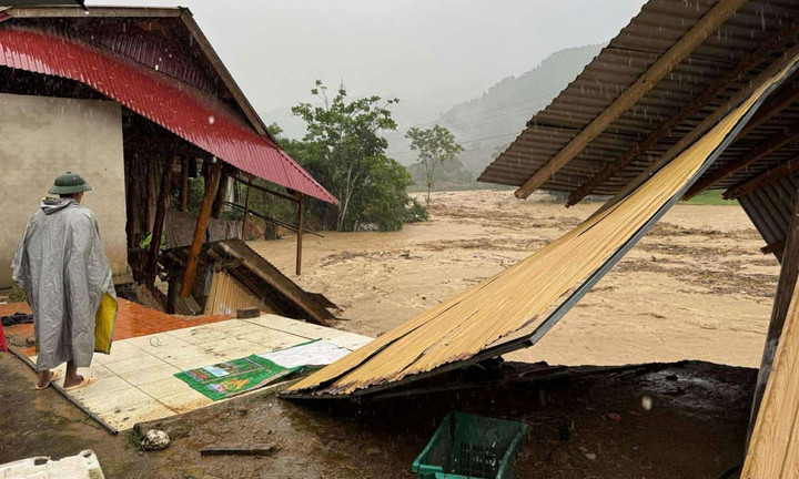 Nhiều ngôi nhà trên địa bàn xã Nhôn Mai, tỉnh Nghệ An bị lũ cuốn trôi. (Ảnh: Báo Nhân Dân)