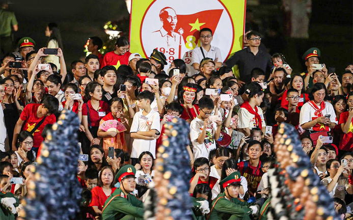 Người dân xem tổng hợp luyện lễ kỷ niệm 80 năm Cách mạng tháng Tám và Quốc khánh 2/9 tại Quảng trường Ba Đình. (Ảnh minh họa: Đắc Huy - Viên Minh)