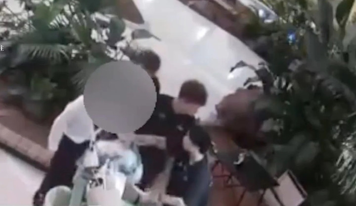 Anh Giang và một số nhân viên nhà hàng ngăn cản cô Hồ bạo hành con gái. (Ảnh: Baidu)