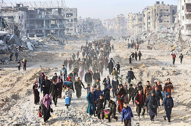 Dòng người Palestine rời khu vực thành phố Gaza. (Ảnh: Getty)