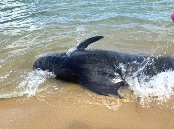 Cá Ông nặng hơn 3 tạ bị mắc cạn tại bờ biển Quảng Ngãi