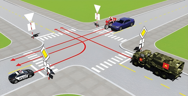 Các phương tiện đi theo thứ tự nào để đúng quy tắc giao thông?