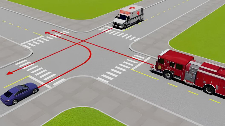 Ba xe cùng đến nơi giao nhau, trong đó có hai xe là xe ưu tiên, theo bạn các xe đi theo thứ tự nào để đúng quy tắc giao thông, hãy giải thích lựa chọn ở ô bình luận.