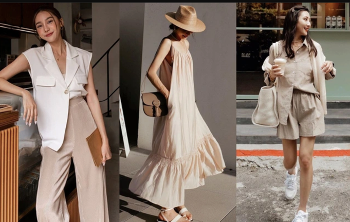 Trang phục màu be rất phù hợp cho những ngày hè nóng bức.
