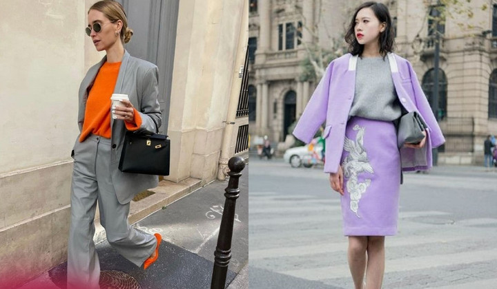 Màu xám cũng có thể kết hợp một cách hài hòa, độc đáo với những trang phục màu tím pastel.