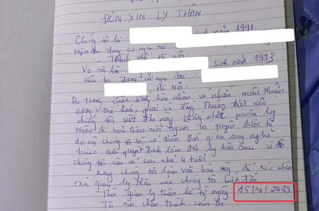 “Thời gian ly thân kể từ ngày 15/10/2033” - mốc thời gian mà anh chàng viết ra để xác định thời gian ly thân cách tận 11 năm bắt đầu từ thời điểm hiện tại.
