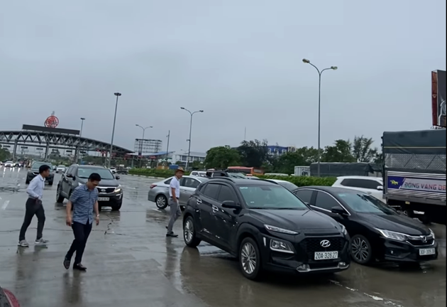 Mưa ngập, lực lượng CSGT tổ chức cấm đường không cho các phương tiện đi theo cả 2 chiều vào cao tốc Pháp Vân - Cầu Giẽ.