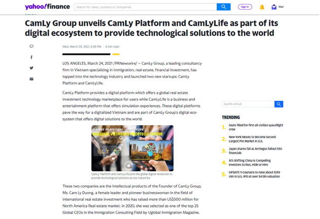 Ngay sau khi vừa công bố, hai dự án này đã được hơn 200 đơn vị báo chí quốc tế quan tâm và đưa tin, trong đó có các trang tin nổi bật trong lĩnh vực tài chính như Yahoo Finance, Market Watch và Market Insider...