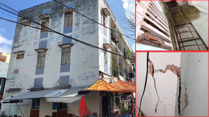 Trụ cột tại chung cư Lâm đặc sản Hòa Cường nứt toác, bong tróc từng mảng. Hệ thống tường, cửa tại chung cư Thuận Phước thì vỡ, lộ cả cốt sắt.