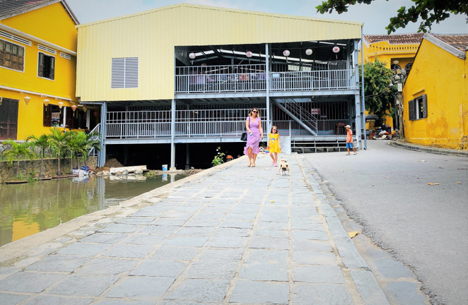 Trong 10 tháng trùng tu, Chùa Cầu vẫn thu hút lượng lớn du khách tham quan với những hình ảnh được trưng bày ngay tại nơi đang được khoanh vùng để thực hiện công tác tu bổ.
