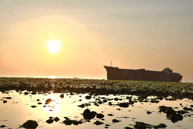 Tàu Thành Hưng 06 nặng hơn 4.500 tấn, trôi dạt vào bờ mắc cạn ở Mũi Dinh (Ninh Thuận) bị bỏ hoang hơn 2 năm qua đã bị biến dạng, nứt gãy, có khả năng sụp đổ.