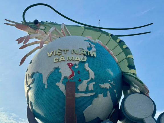 Biểu tượng "con tôm ôm quả địa cầu" là một trong những điểm nhấn tại quảng trường Phan Ngọc Hiển, Cà Mau - công trình trị giá 22 tỷ đồng.
