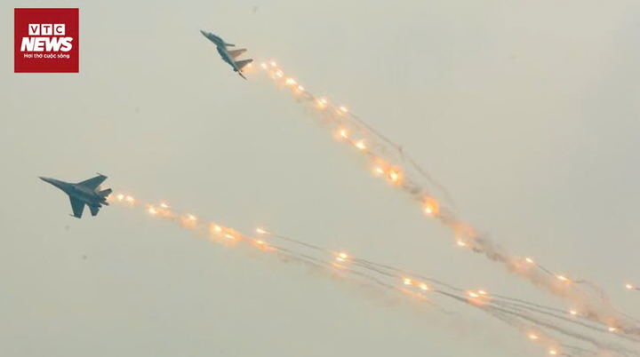 Cận cảnh dàn Su-30MK2 thả bẫy nhiệt, khoan xoắn điêu luyện trên Ba Đình