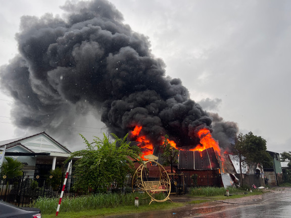 Biển lửa bao trùm kho nhựa ở Quảng Nam.