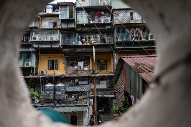 Người dân tận dụng mọi khoảng trống để chứa đồ đạc, tạo nên cảnh nhếch nhác bên trong khu tập thể.